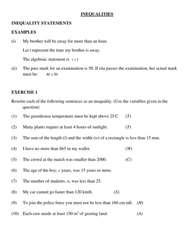 Inequality word problems worksheet answer key.